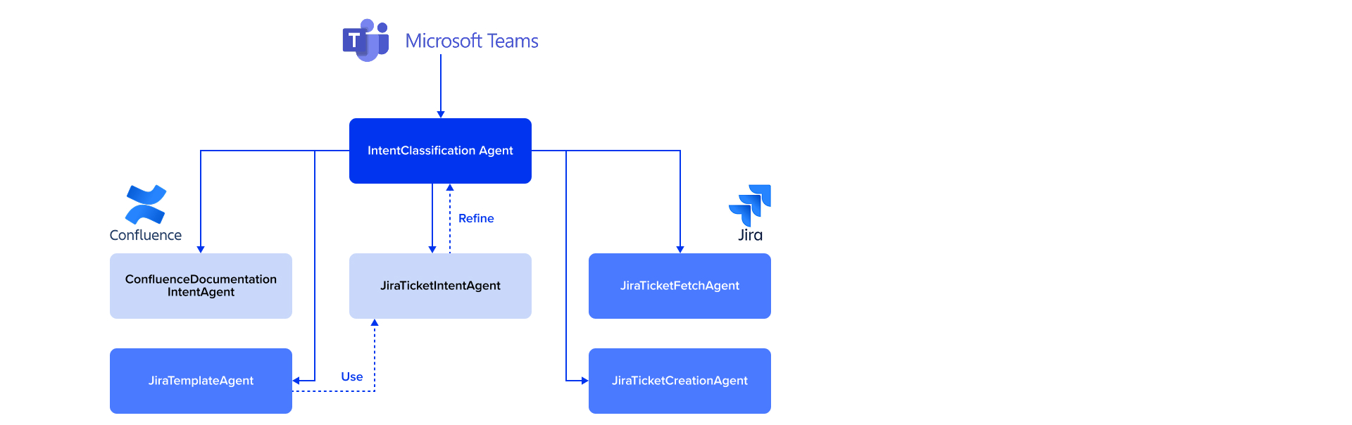 Die Lösung besteht aus einem modularen Aufbau von spezialisierten Agents: